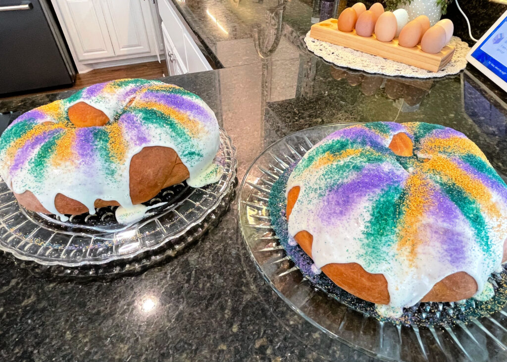 Freezing: Freeze a finished King Cake for up to 2-3 months. Wrap well in plastic to protect it. Thaw for 2-3 hours on the counter before serving.