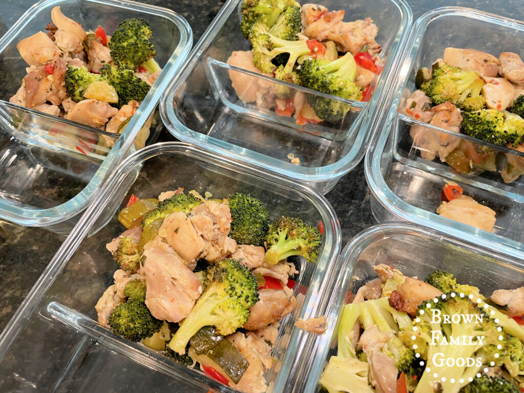 Divide the mixture evenly into 5 meal prep containers.
